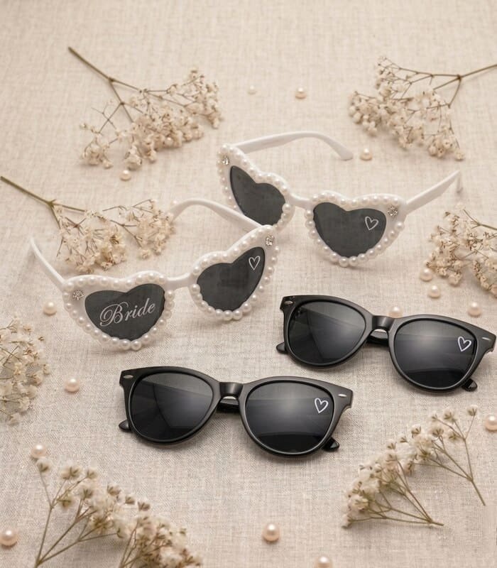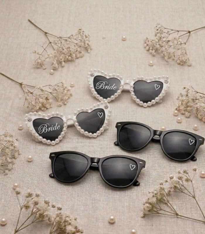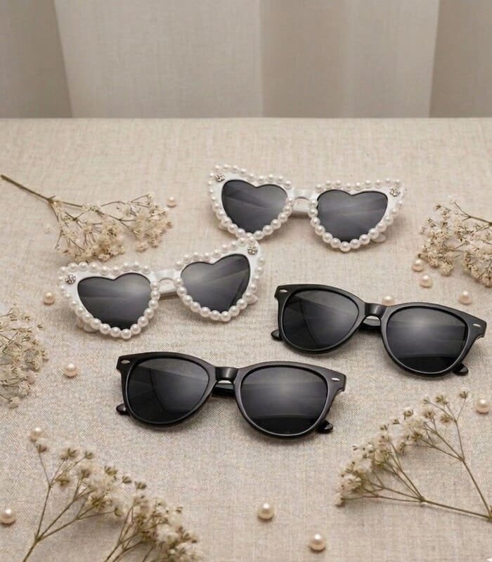 تصميم مميز: نظارات على شكل قلب مرصعة يدوياً بحبات اللؤلؤ لإطلالة كلاسيكية ناعمة.